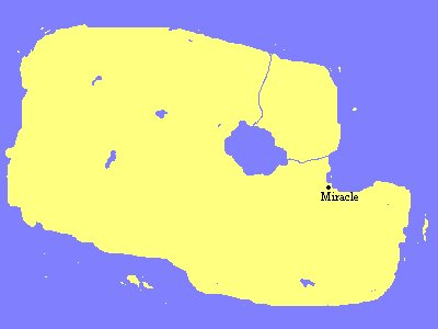 A current map of Zambonia. Miracle is the capital city, although at the moment its only inhabitants are the researchers that are surveying the natural resources.